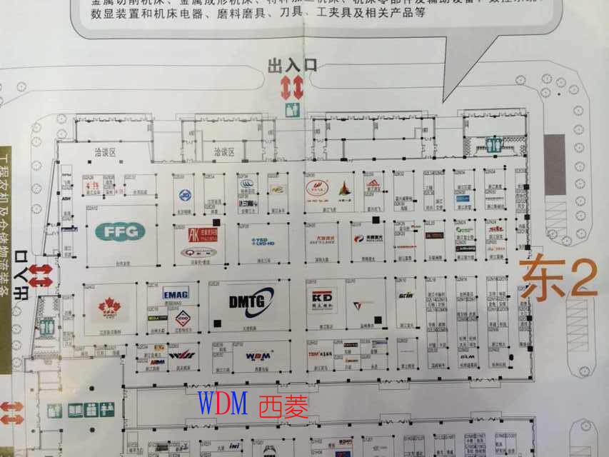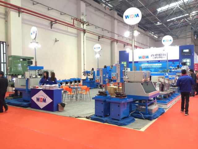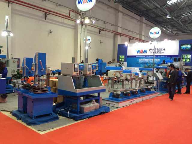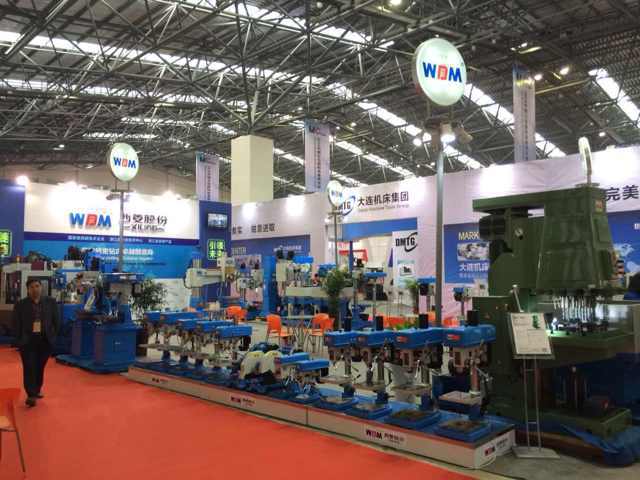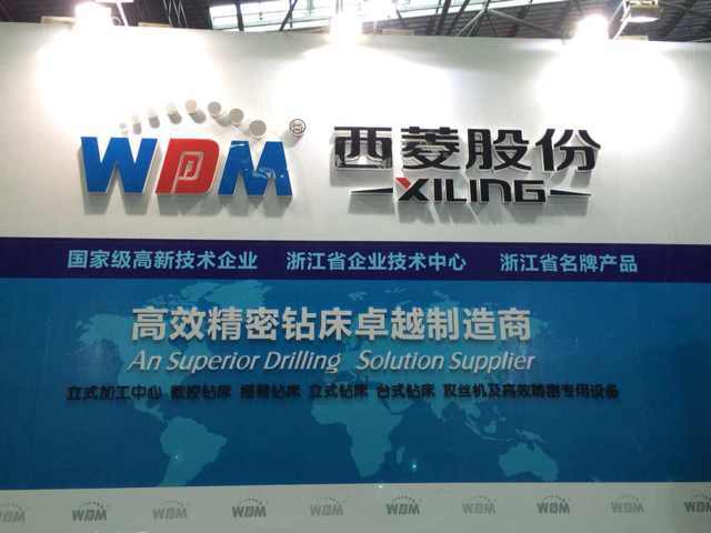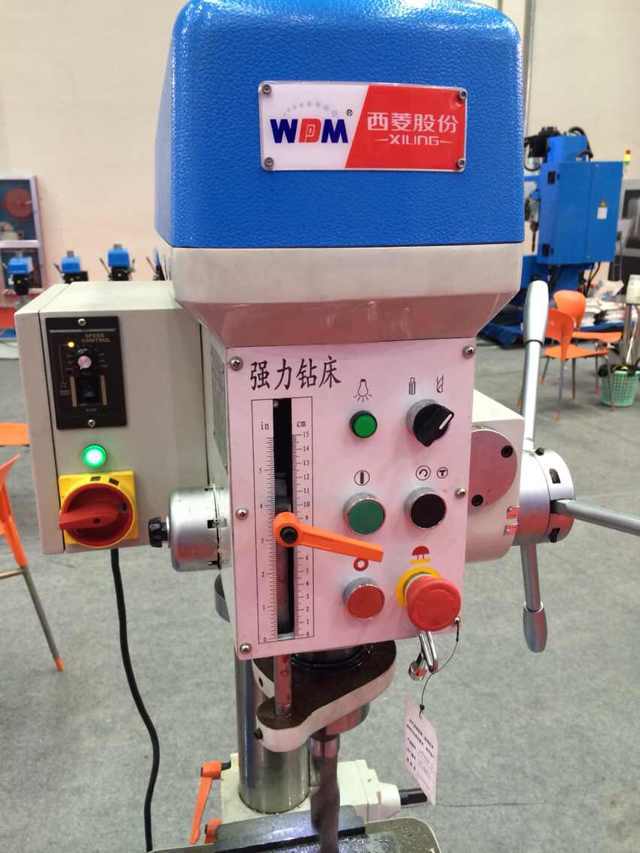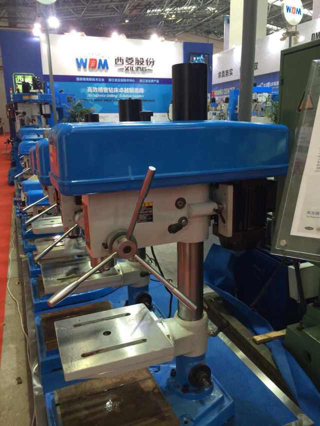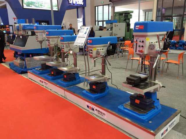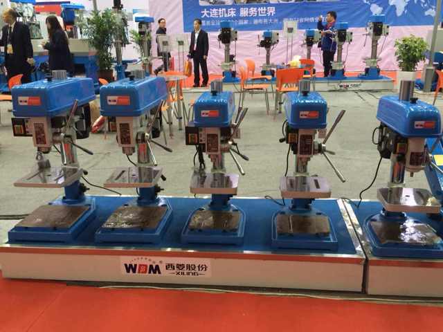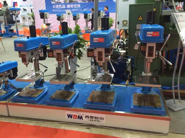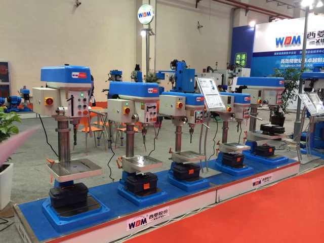 在過道上展示的是西菱新品:數控攻絲機、D系列精品臺鉆、B1系列精品臺鉆(主軸箱升降)、G系列強力鉆床
